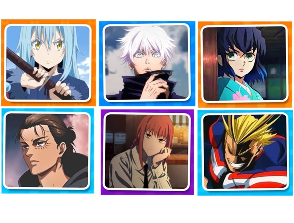 キャラ(声優)の声を聴いて、登場しているアニメタイトル(先頭仮名のあ行~わ行などの行)を当てるアニメキャラ当てクイズ。七つの大罪,約束のネバーランド,転生したらスライムだった件,斉木楠雄のΨ難,SPY×FAMILY,進撃の巨人,呪術廻戦,ワ...